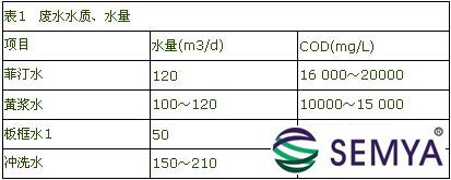 生產(chǎn)廢水主要來源于浸泡、胚芽分離、纖維洗滌和脫水等工序,其主要成分為淀粉、糖類、蛋白質(zhì)、纖維素等有機(jī)物質(zhì)和氮、磷等無機(jī)物,各種廢水水質(zhì)、水量見表1。