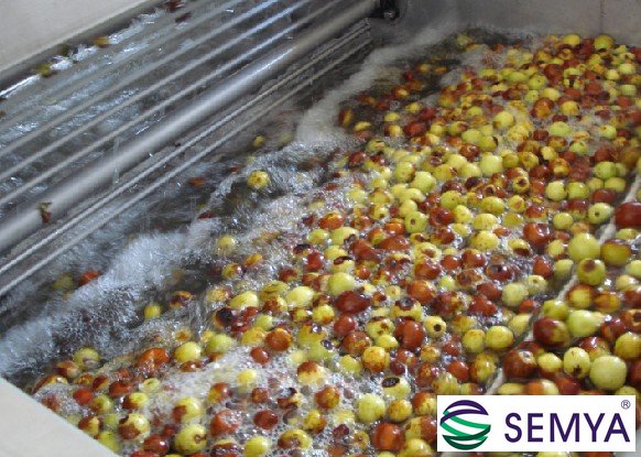 在這個(gè)流通過程中使紅棗在浮洗機(jī)中隨水流動翻轉(zhuǎn),得以充分的浸泡、清洗后,紅棗進(jìn)入消毒池。