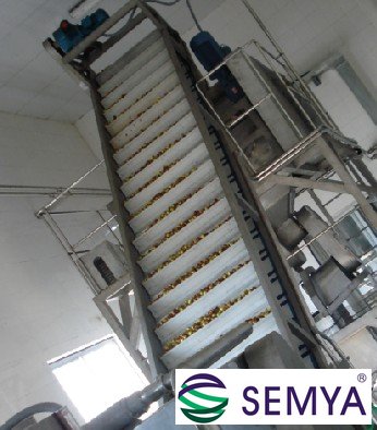 用一級螺旋提升機(jī)將紅棗提升至揀選臺。通過調(diào)節(jié)提升機(jī)變速箱調(diào)節(jié)原料進(jìn)料量,以保證生產(chǎn)需要。